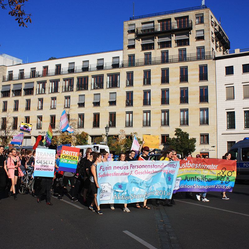 Unser Trans*Banner beim Treffen der Aktion Standesamt 2018 in Frankfurt am Main