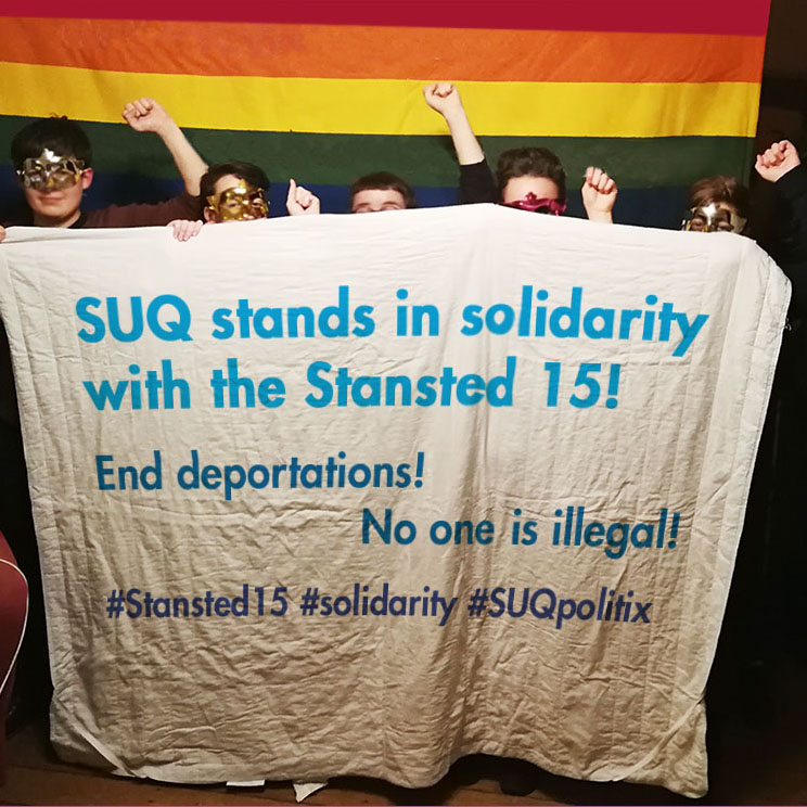 Dezember 2018: SUQ stands in solidarity with the Stansted 15! End deportations! No one is illegal!